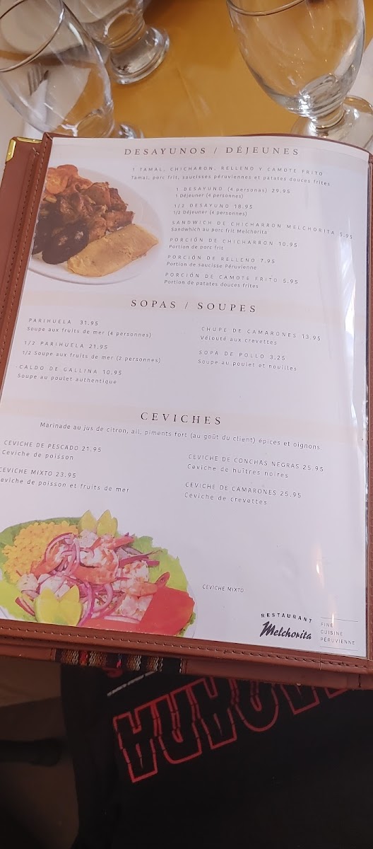 Welcome to Restaurant Melchorita, a flavorful oasis located in the heart of Montréal. Here, you'll discover an enticing blend of authentic Peruvian cuisine and welcoming service. The menu is a celebration of traditional flavors, featuring satisfying breakfast options like the renowned Pan con Chicharron and a delightful array of ceviches, including the Ceviche De Huitres Noires and Cebiche Mixto.